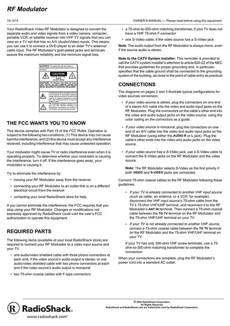 Related Book : radio shack rf modulator manual